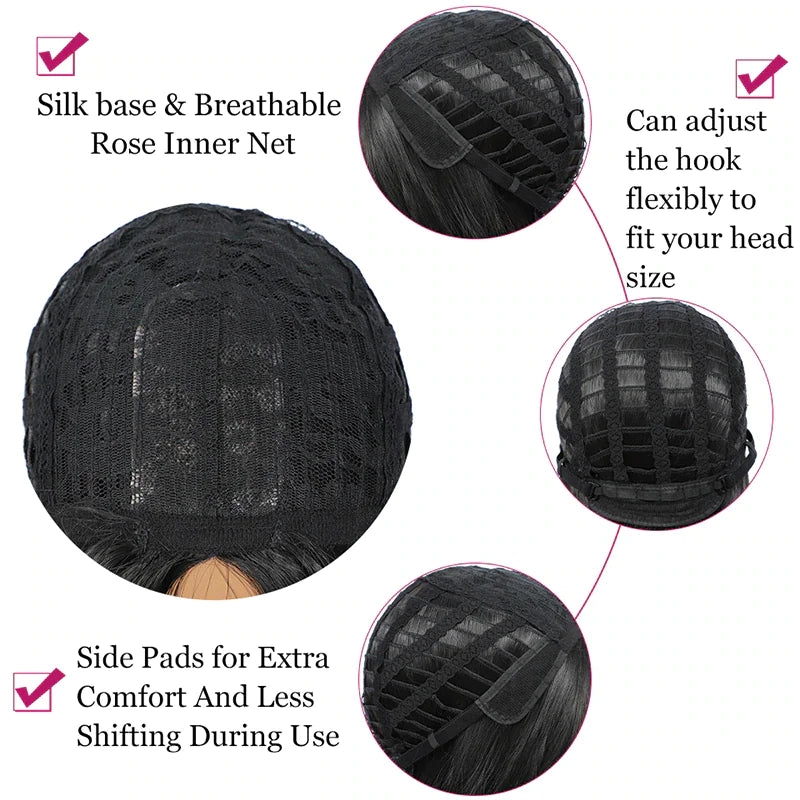 Beginner friendly and big head friendly long curly wigs for women. The cap is about aprx 22", and has two combs near the hairline and an adjustable strap in the back. You can adjust the cap to your best size. High-quality elastic meshes make the deep wave wig more comfortable and breathable to wear.
